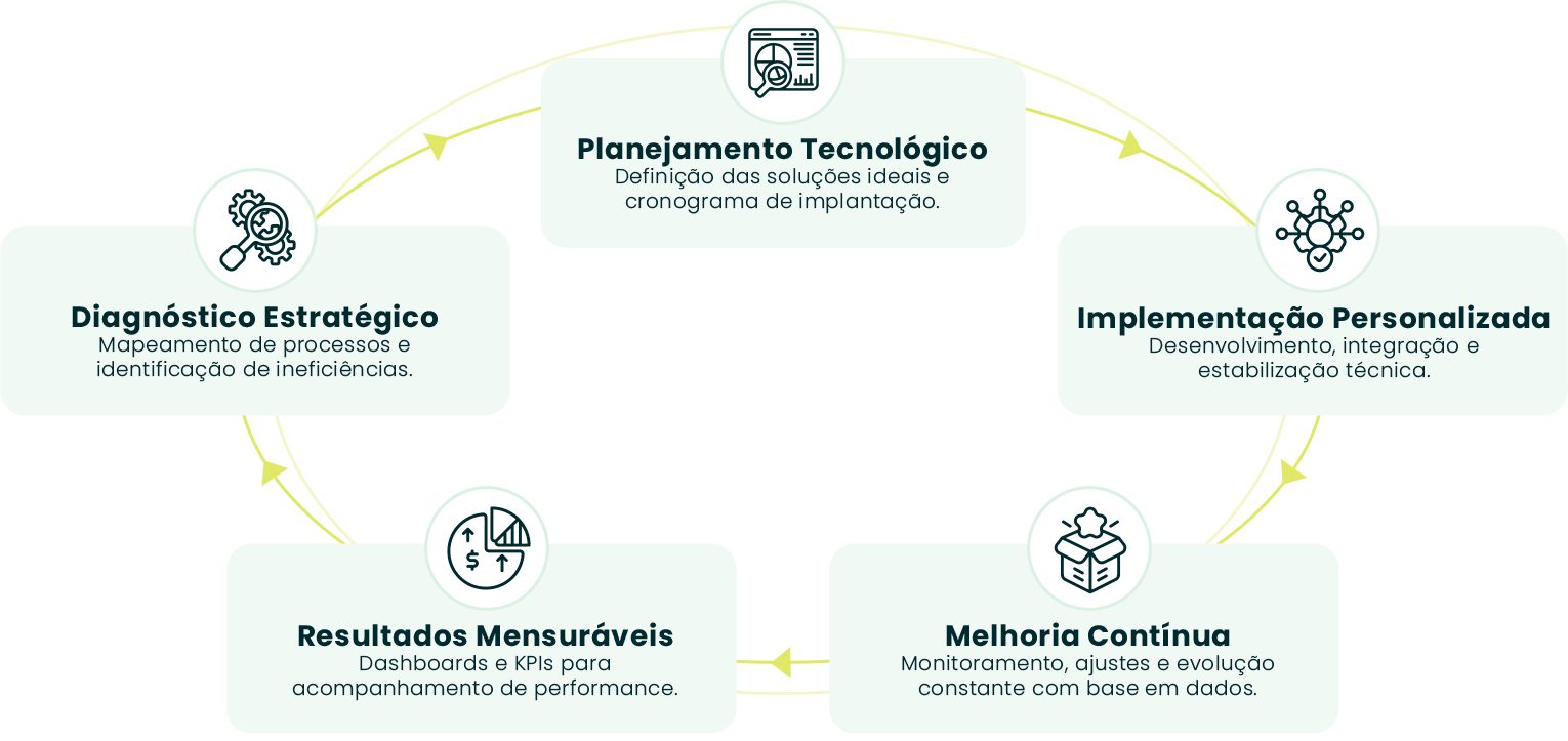 Unimos estratégia, automação e inteligência de dados para impulsionar operações com eficiência, previsibilidade e crescimento seguro.